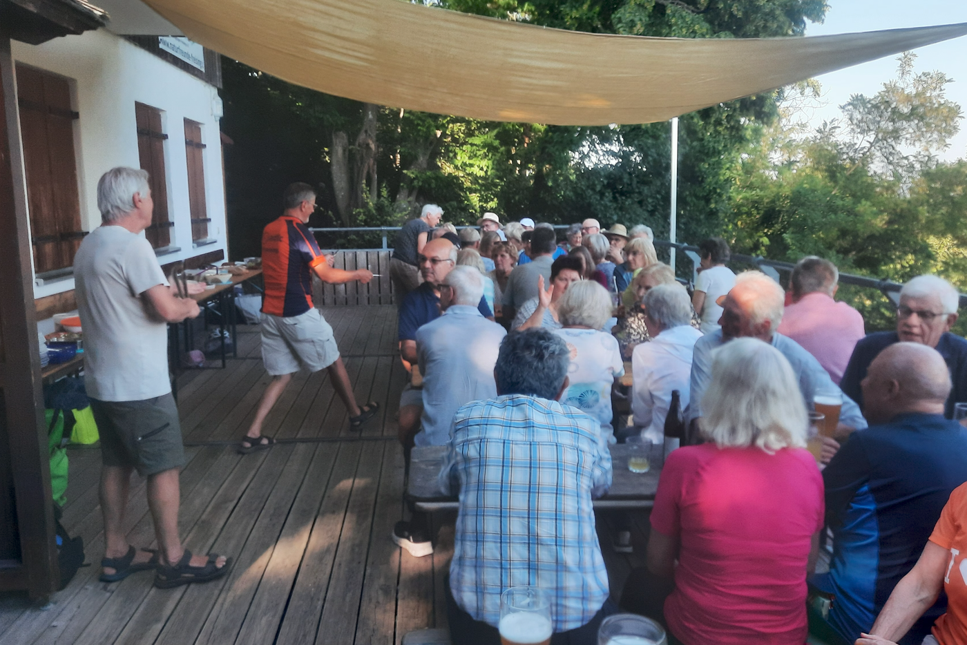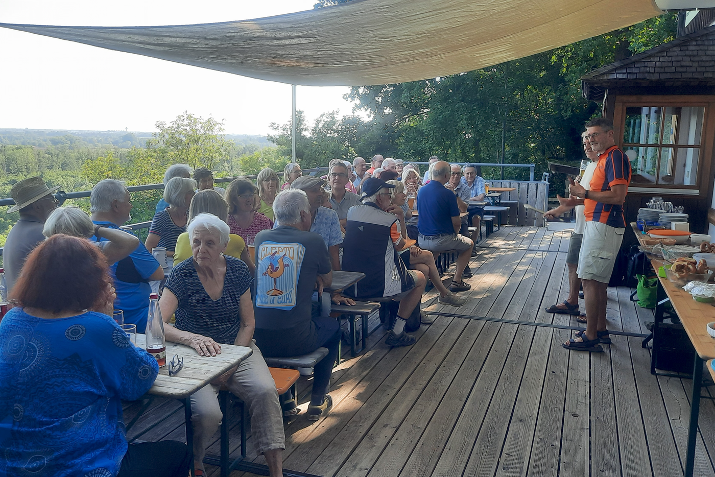 Begrüßung der Mitglieder durch den Vorsitzenden Hans Pemp beim traditionellen Sommerfest des ADFC Freising am 6. August 2025 im Naturfreundehaus Hangenham
